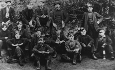 Japanese miners wearing fish oil lamps on their hats work a seam in a mine in Cumberland, B.C. |
